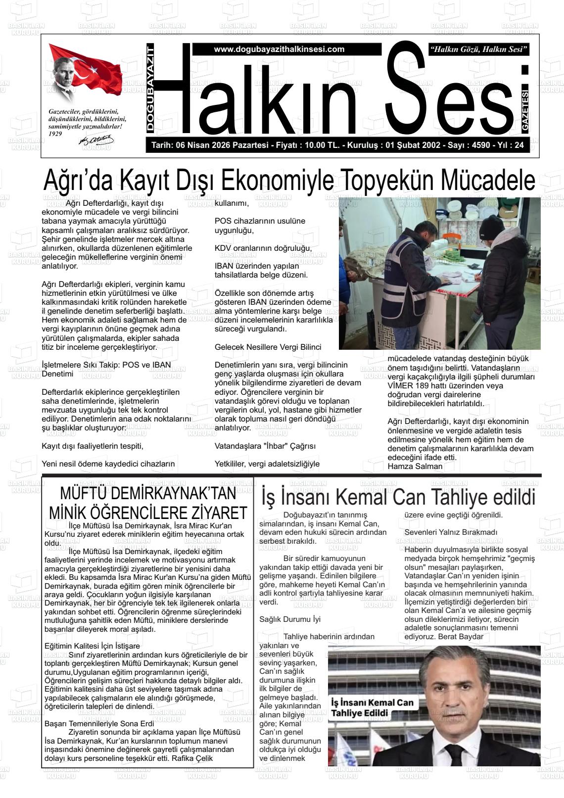 Ağrı Yerel Gazeteleri 06 Nisan 2026, Pazartesi Günü Manşeti