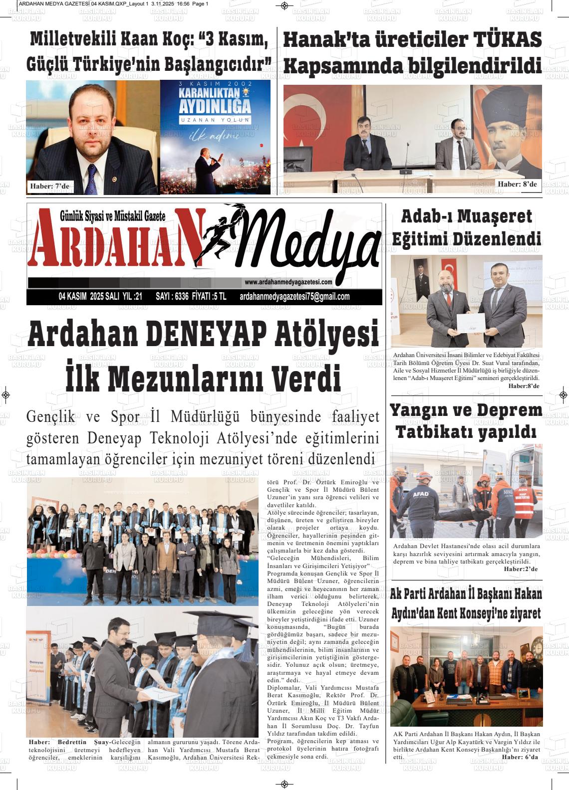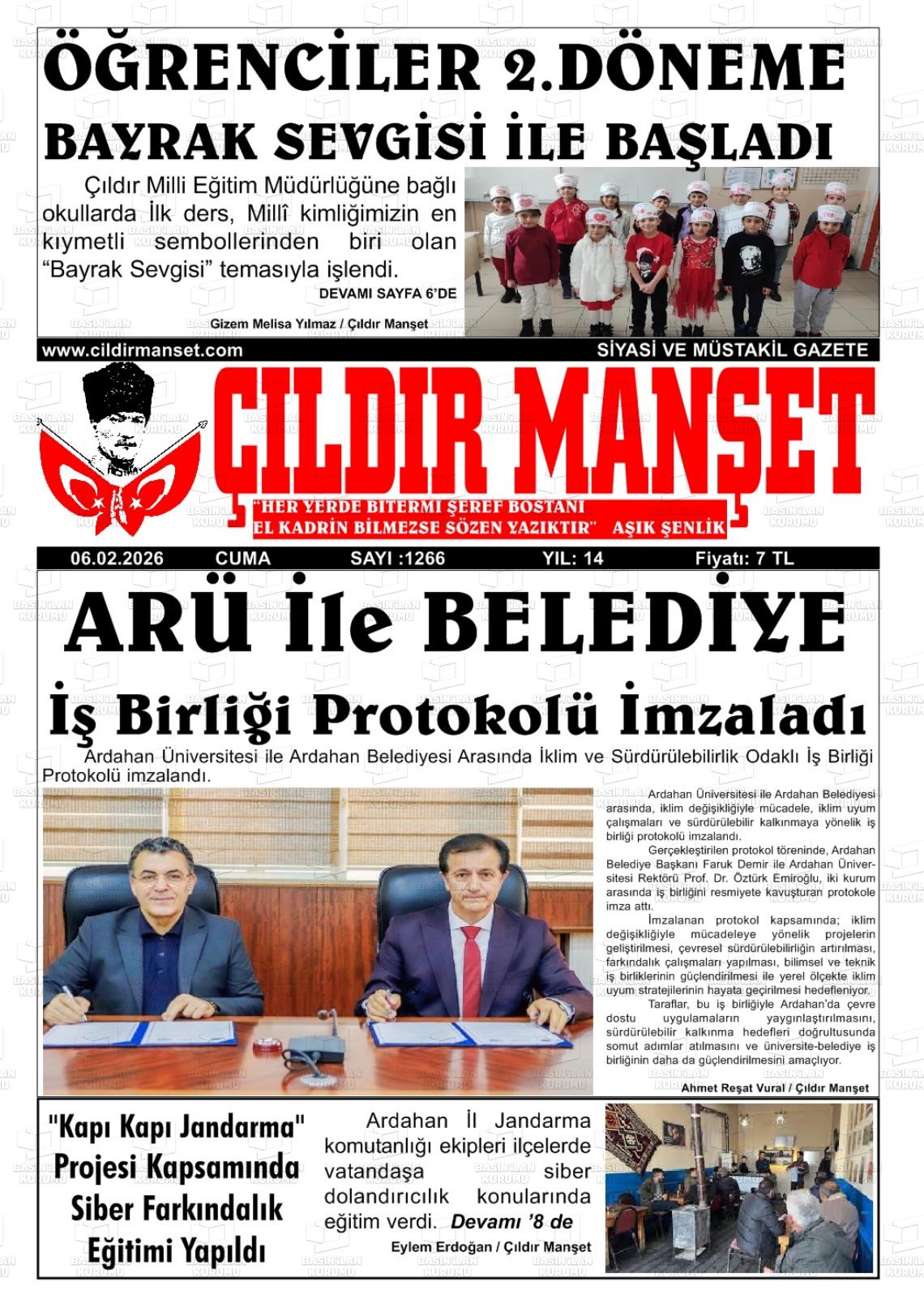 Ardahan Yerel Gazeteleri 06 Şubat 2026, Cuma Günü Manşeti