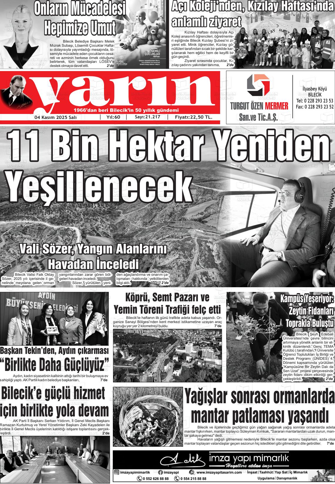Bİlecİk Yerel Gazeteleri 22 Aralık 2025, Pazartesi Günü Manşeti