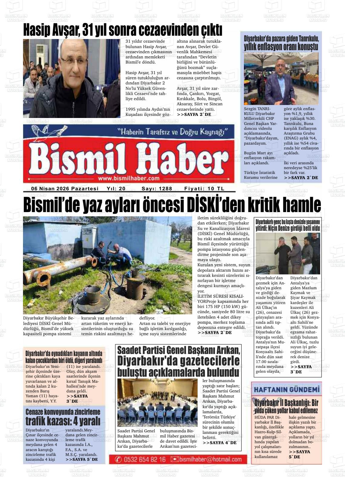 Dİyarbakır Yerel Gazeteleri 06 Nisan 2026, Pazartesi Günü Manşeti