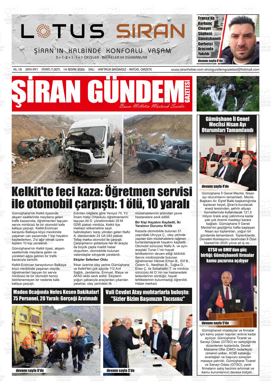 Gümüşhane Yerel Gazeteleri 14 Nisan 2026, Salı Günü Manşeti