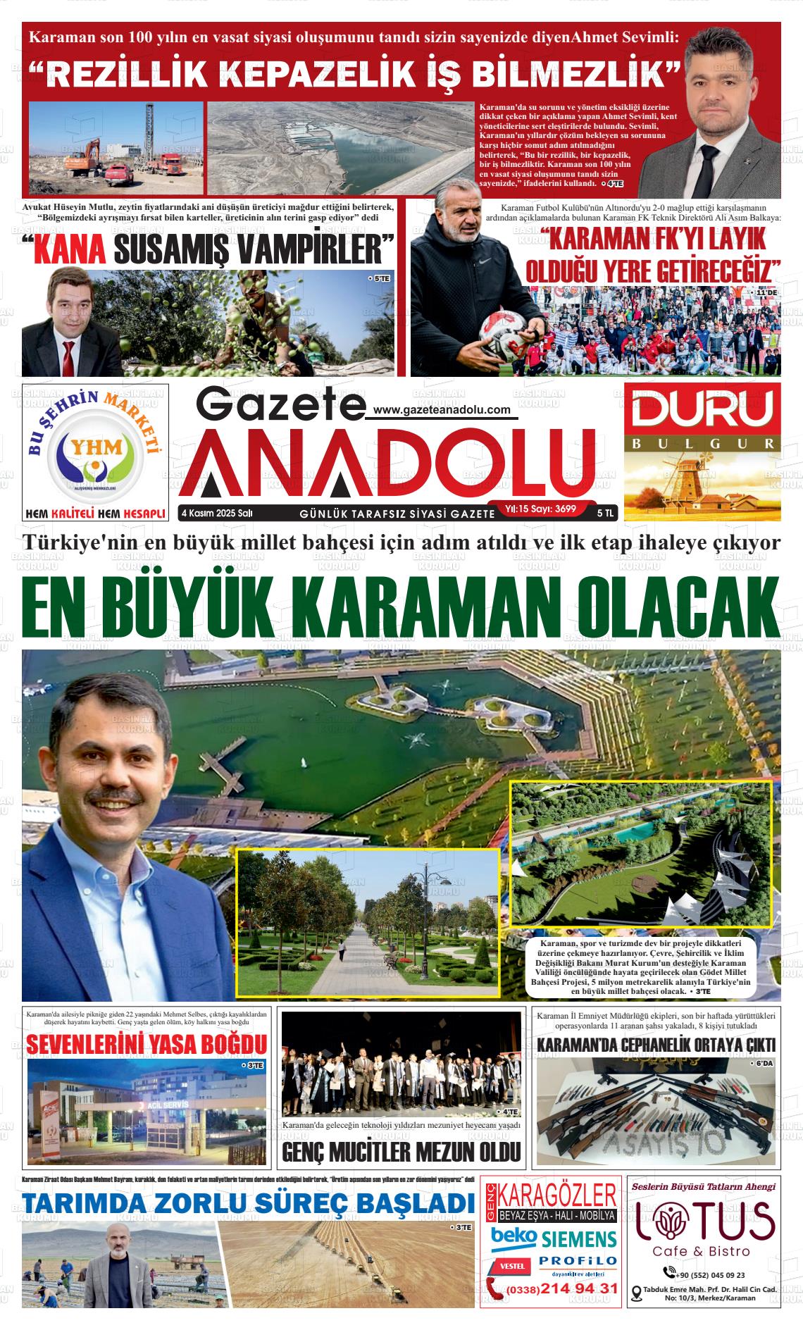 06 Nisan 2026, Pazartesi Günü Manşeti