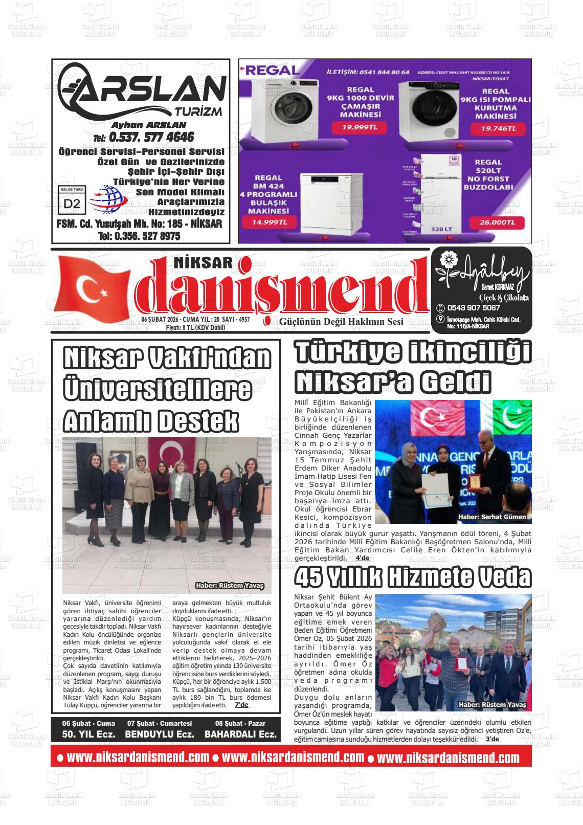 Tokat Yerel Gazeteleri 06 Şubat 2026, Cuma Günü Manşeti